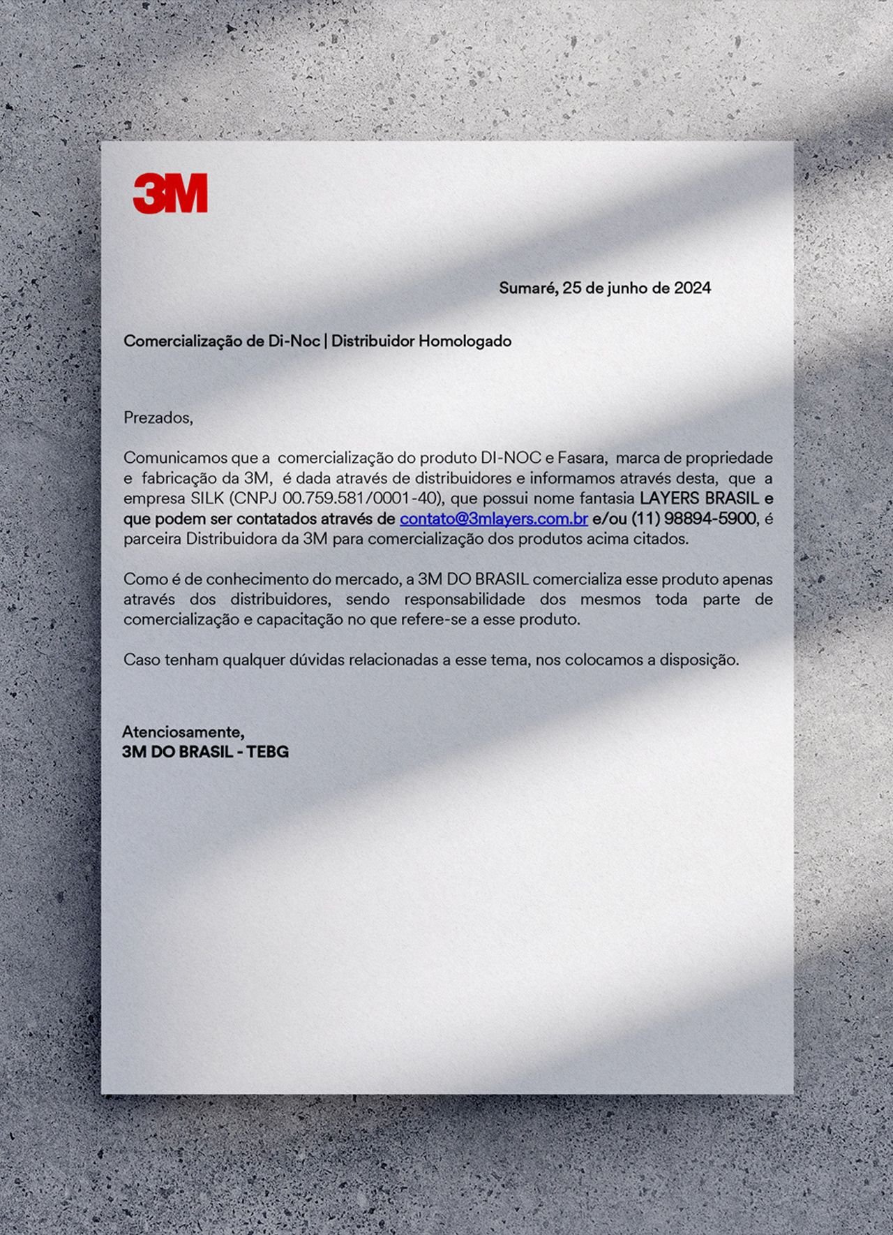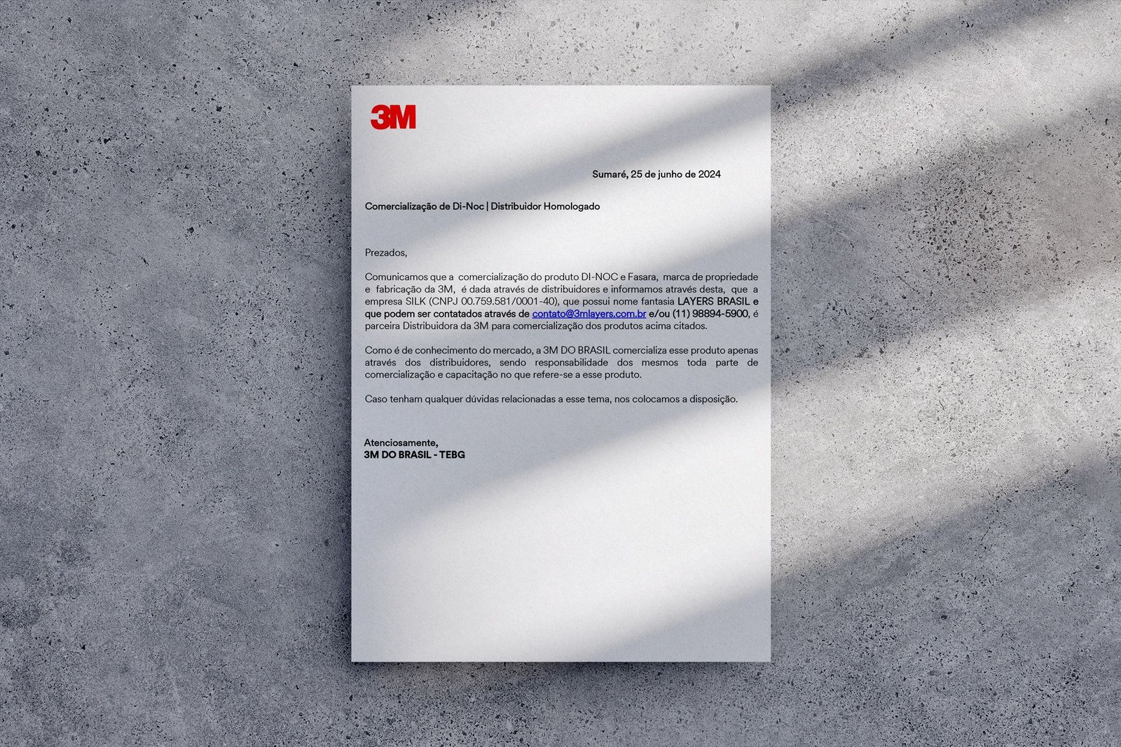 Recebemos uma Carta oficial da 3M™ felicitando nossa equipe pelo compromisso e excelência que demonstramos como parceiros ao longo dos anos. Este reconhecimento não apenas valida nosso empenho em fornecer produtos de alta qualidade, como também fortalece nossa missão de oferecer soluções inovadoras e sustentáveis para seus projetos. Gostaríamos de expressar nossa sincera gratidão a vocês, nossos estimados clientes e amigos, por sua confiança contínua em nossa empresa. Sem o apoio e a colaboração de cada um de vocês, este feito não seria possível. Para compartilhar esta conquista com todos, na imagem acima anexanda segue a carta oficial da 3M™ que recebemos.
